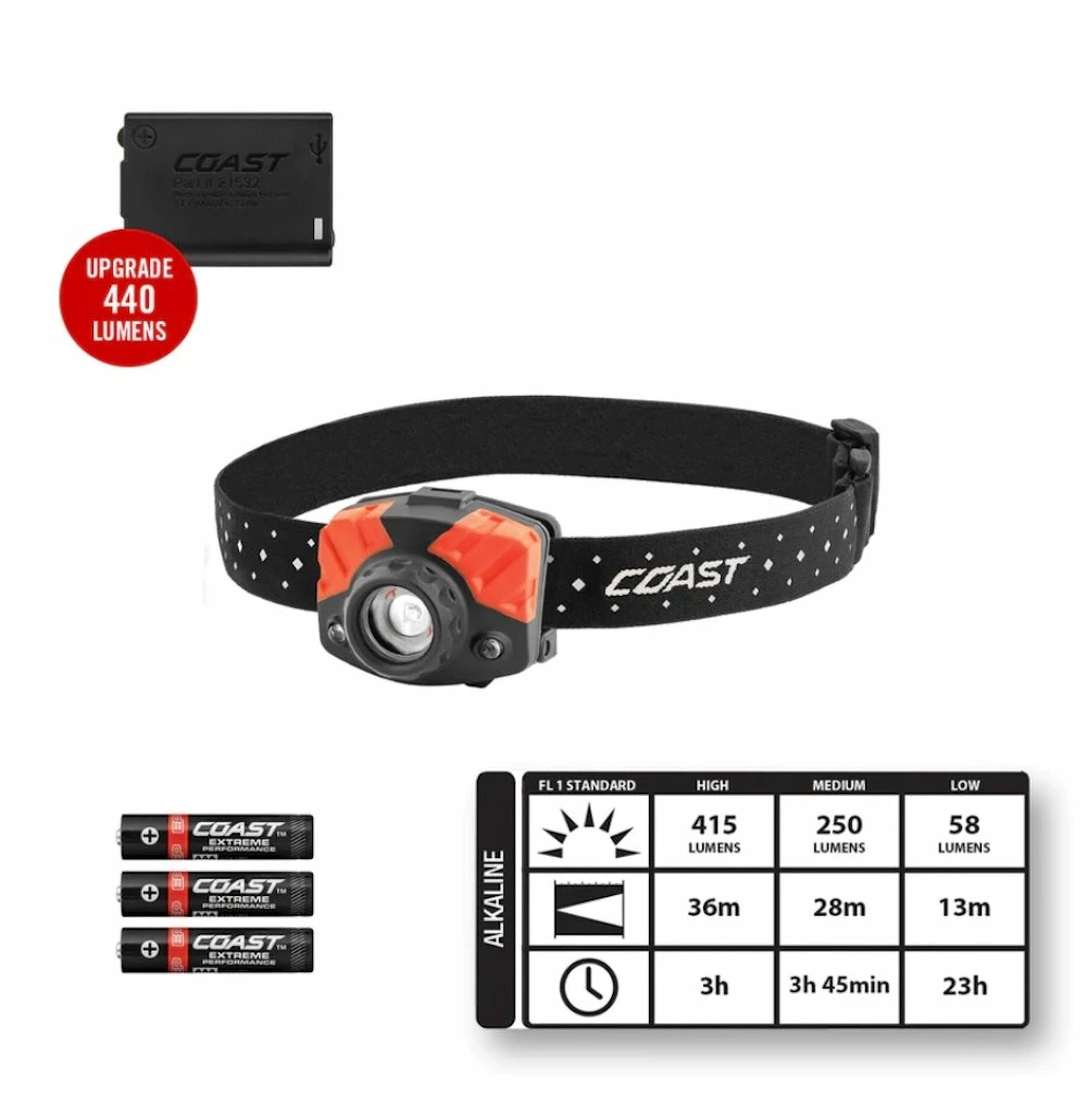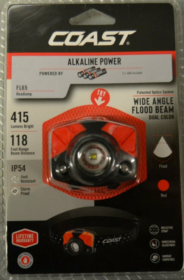 - With Coast’s commitment to quality, the FL65 Headlamp is impact resistant, weather resistant and its LED is virtually unbreakable.