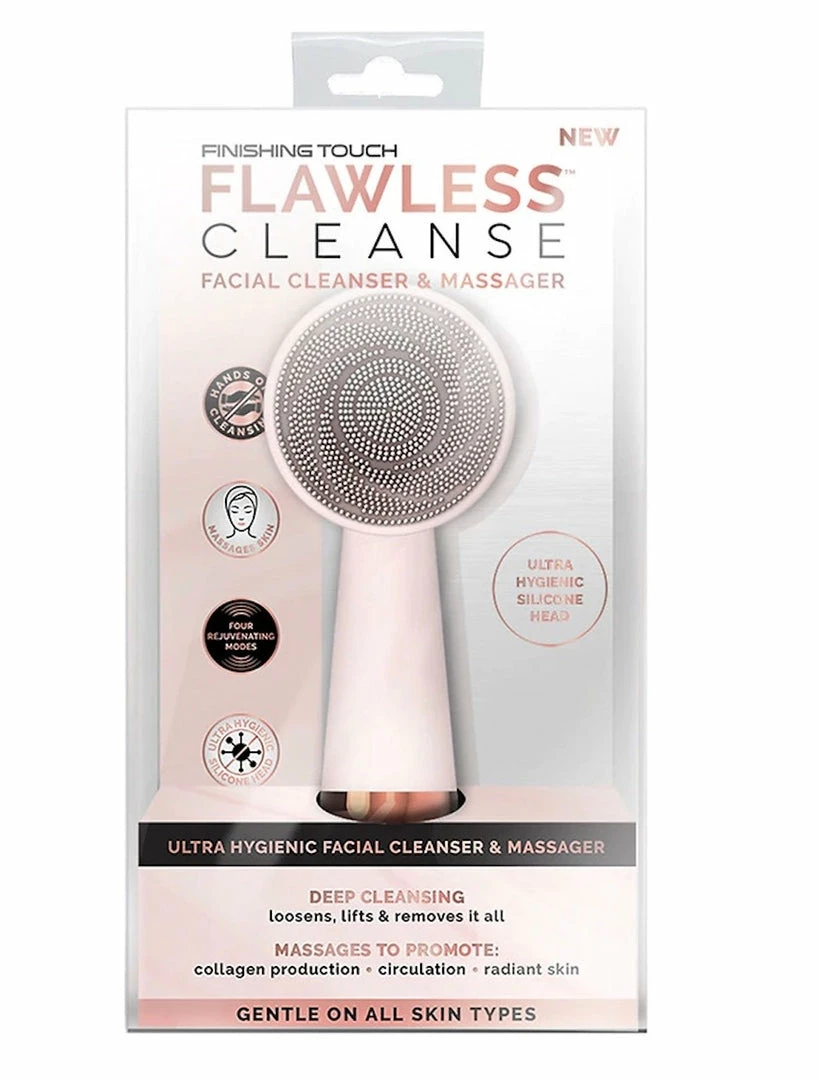 Flawless Cleanse with its silicone head is an ultra-hygienic cleanser and exfoliator that promotes the appearance of radiant, clean, more youthful skin. Flawless Cleanse has 4 modes, gentle cleansing, pulsating, massage, and deep cleanse for the ultimate facial cleaning experience.