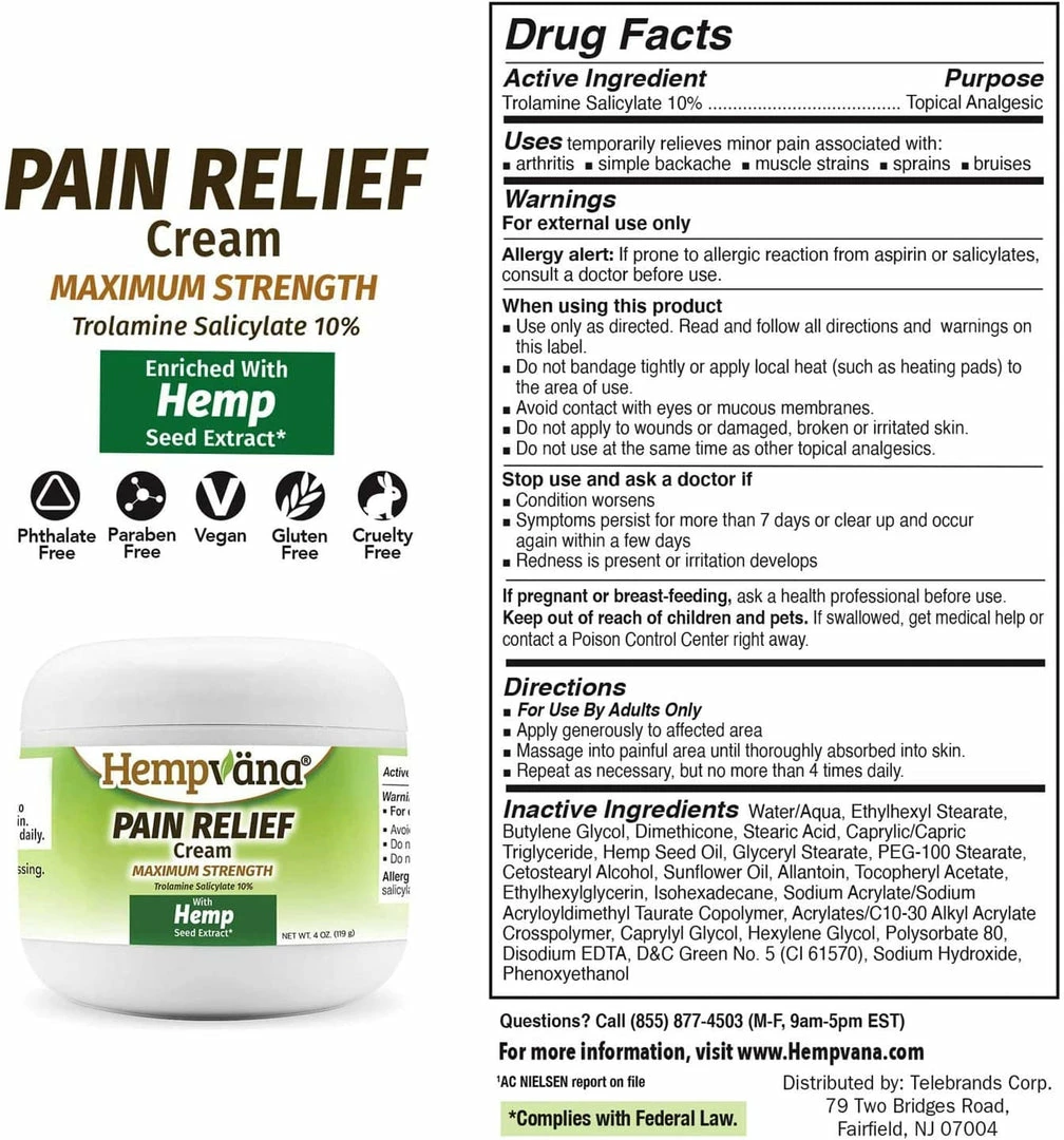 - INCLUDED: one (1) 4-oz (119g) jar of Hempvana Pain Relief Cream.