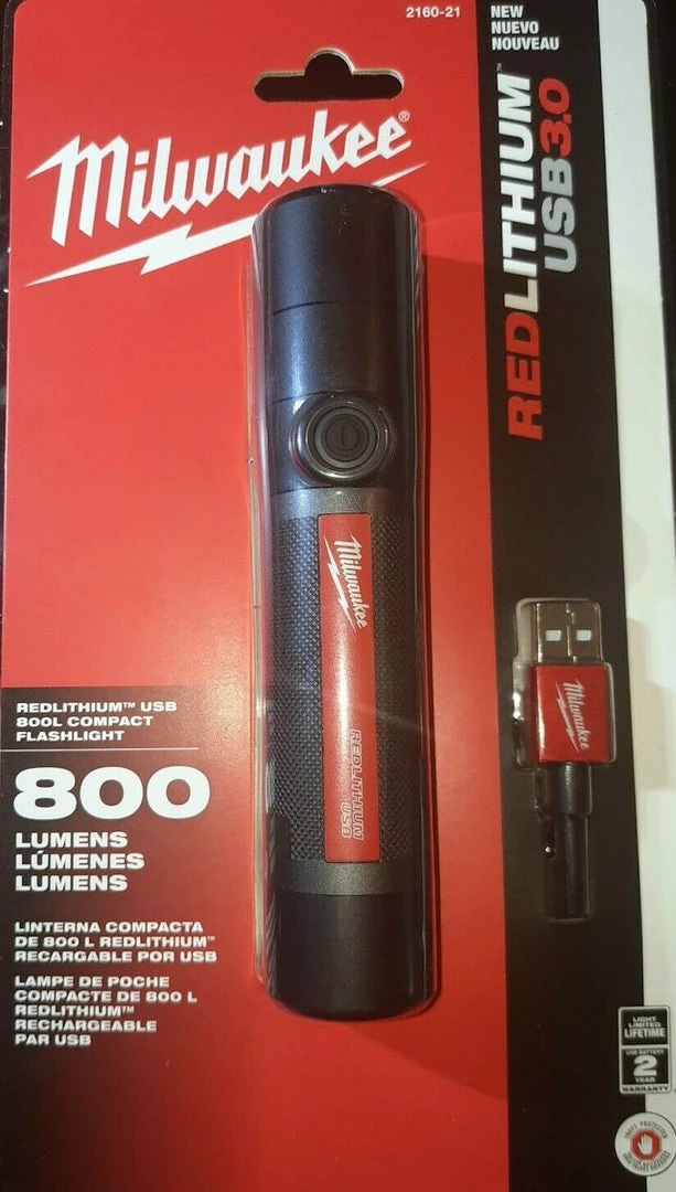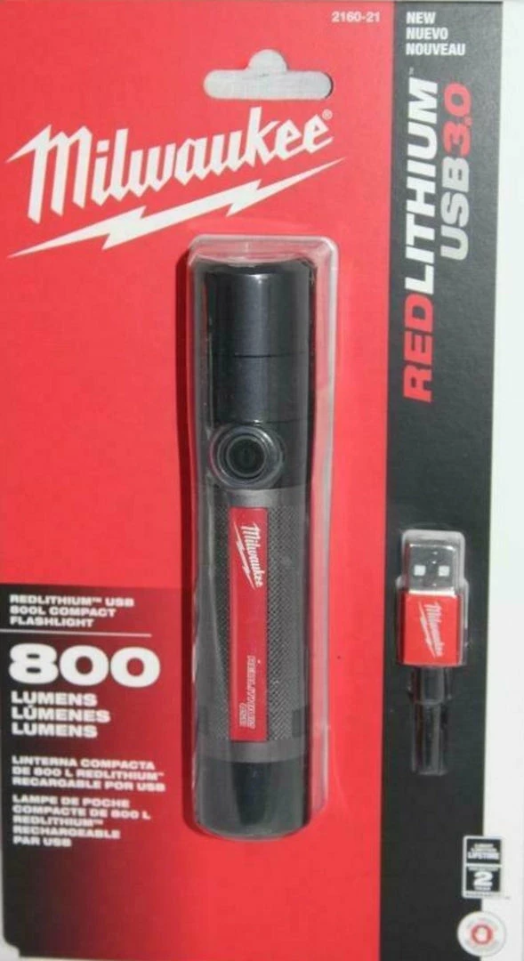 - The MILWAUKEE USB Rechargeable 800L Twist Focus Flashlight is powered by the REDLITHIUM USB 3.0AH Battery, providing all-day run-time, more recharges, and 3x faster charge time.