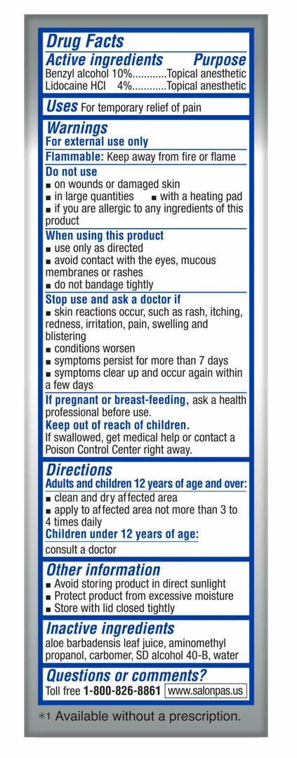 - SALONPAS LIDOCAINE ROLL-ON: Maximum strength Lidocaine, available without a prescription, provides relief for minor aches & pains. Easily apply under clothing for hours of relief from muscle soreness, sprains, back pain or backache, joint pain, & neck pain