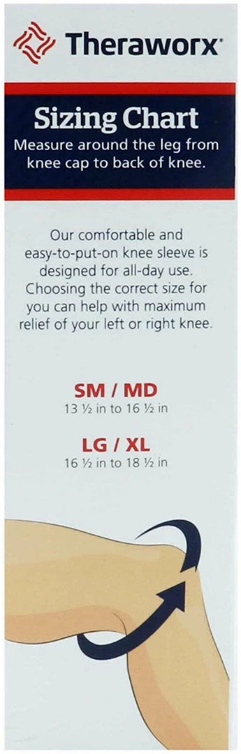 This Theraworx bundle includes one soft, medical grade compression knee sleeve for the Left or Right Knee that fits either Small to Medium or Large to Extra Large size.Â