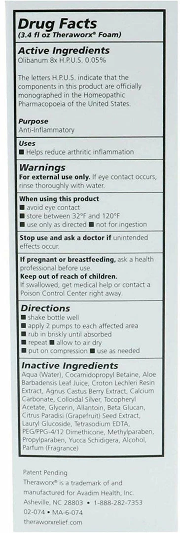 - Get back on your feet, with Theraworx Relief for Joint Discomfort and Inflammation Foam.