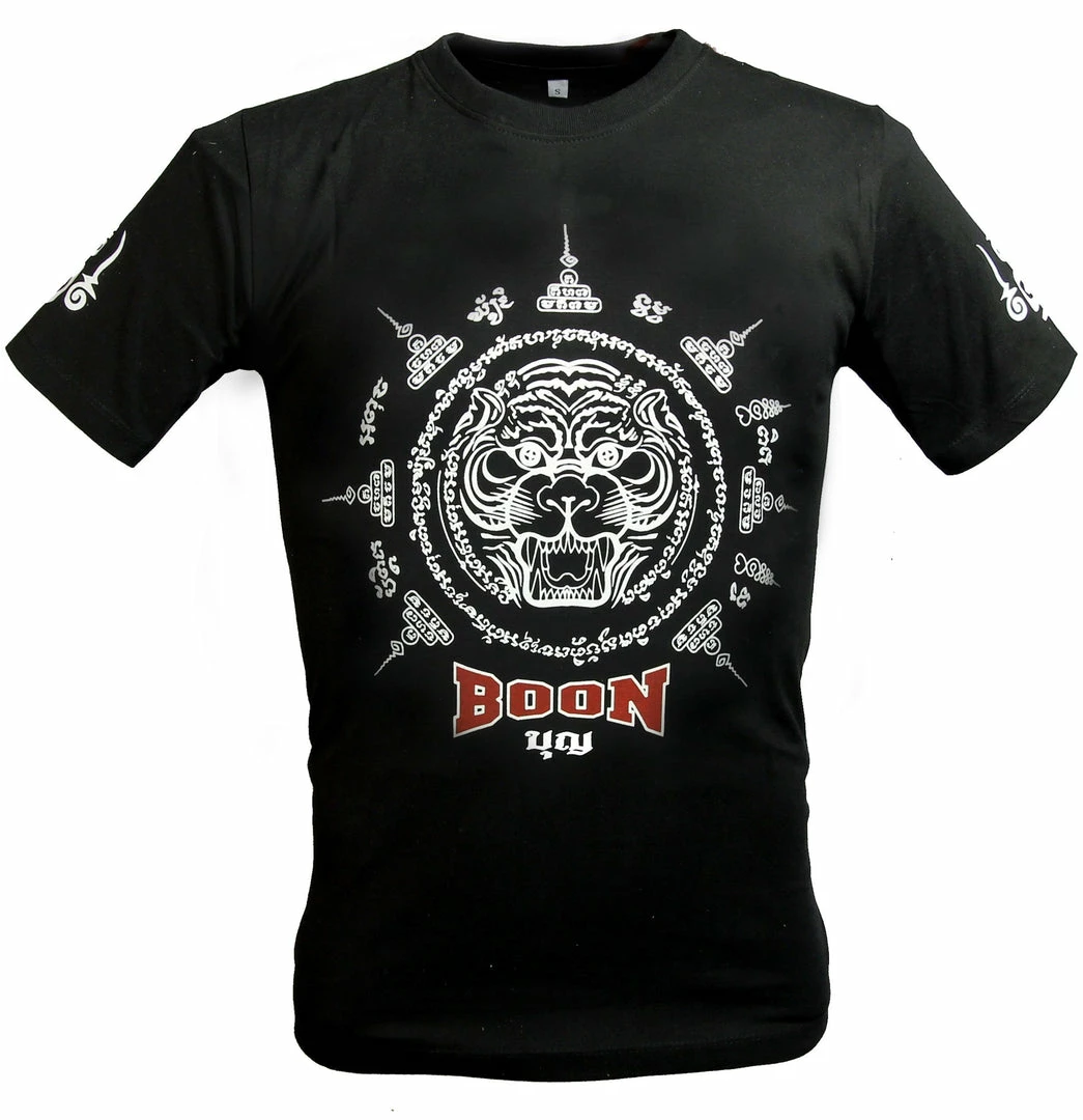 Boon Sport Tiger Yant Training GEAR is a piece of authentic Thai boxing apparel. Crafted by Boon in Thailand for both training and casual-wear, this garment is loose-fitting yet durable. The Boon training vest is a magnificently made garment that is built to last. Made from 100% polyester and with eye-catching logos, this will make you stand out! Boon is made from the highest quality leather in Thailand and is battle-tested by warriors across the length and breadth of the country. With a focus on quality and performance, Boonsport has become a leading Thai brand. Worn by fighters such as John Wayne Parr and Liam Harrison, Boon has a reputation for quality through all of Thailand.