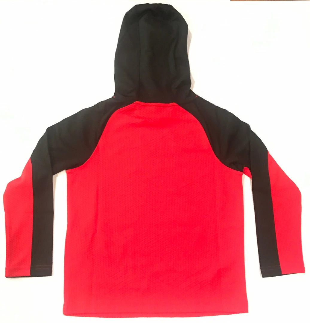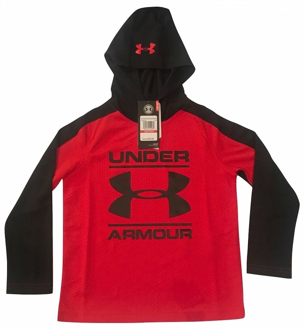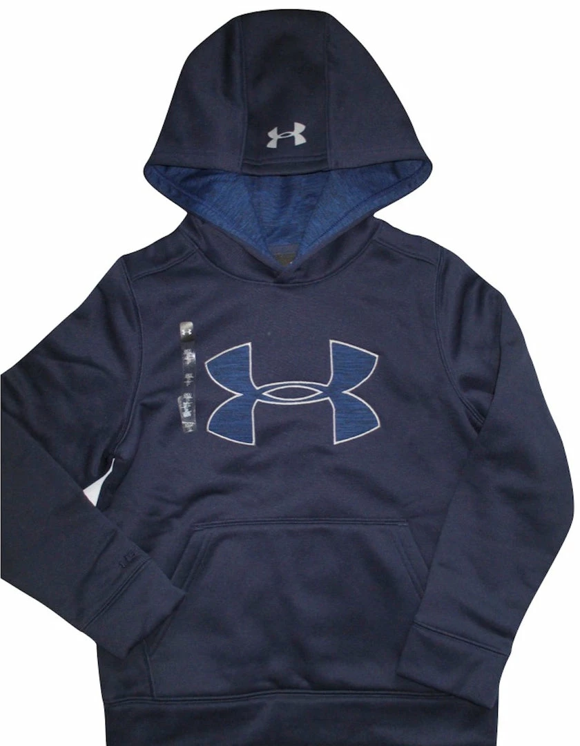 This BOYS UNDER ARMOUR LOOSE HEAT GEAR LONG SLEEVE PULLOVER HOODIE is Navy Blue COLOR or Black Color, is LONG SLEEVE, and does the impossible by keeping you warm without weighing you down.