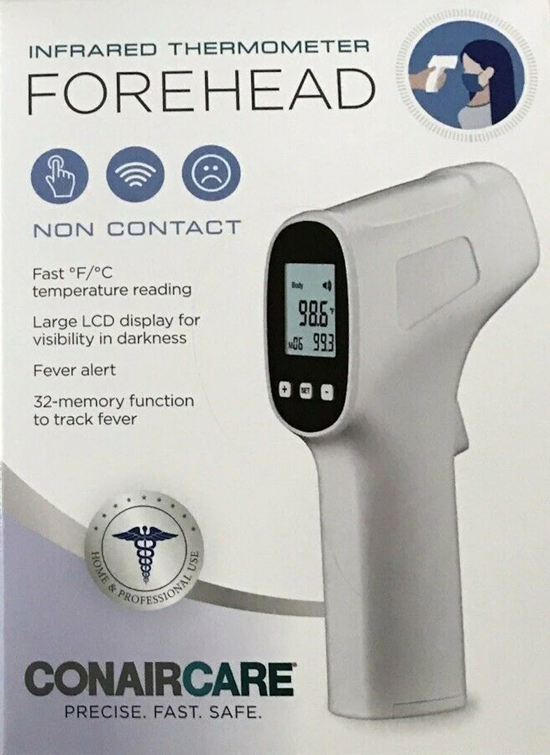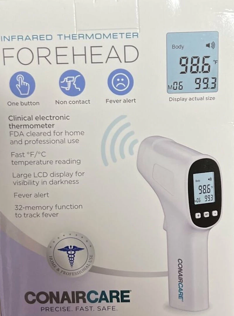- Take an easy temperature reading with the ConairCare Non-Contact Infrared Digital Forehead Thermometer.