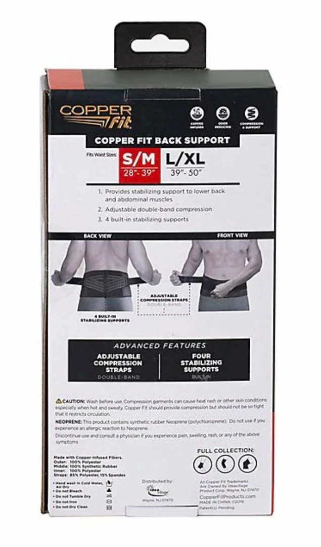 - Copper Fit Back Pro is a copper-infused compression garment for lower back muscle support