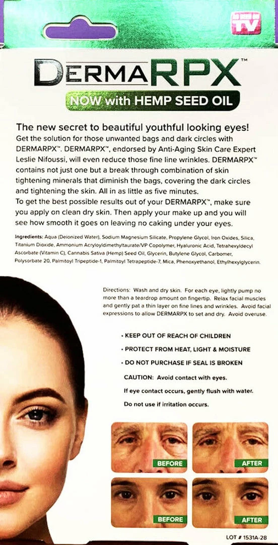 - Get the best solution for those unwanted bags and dark circles with Derma RPX. Derma RPX, endorsed by Anti-Aging Skin Care Expert Leslie Nifoussi, will even get rid of those fine line wrinkles. Derma RPX contains not just one but a break through combination of skin tightening minerals that diminish the bags, covering the dark circles and tightening the skin. All in as little as five minutes.