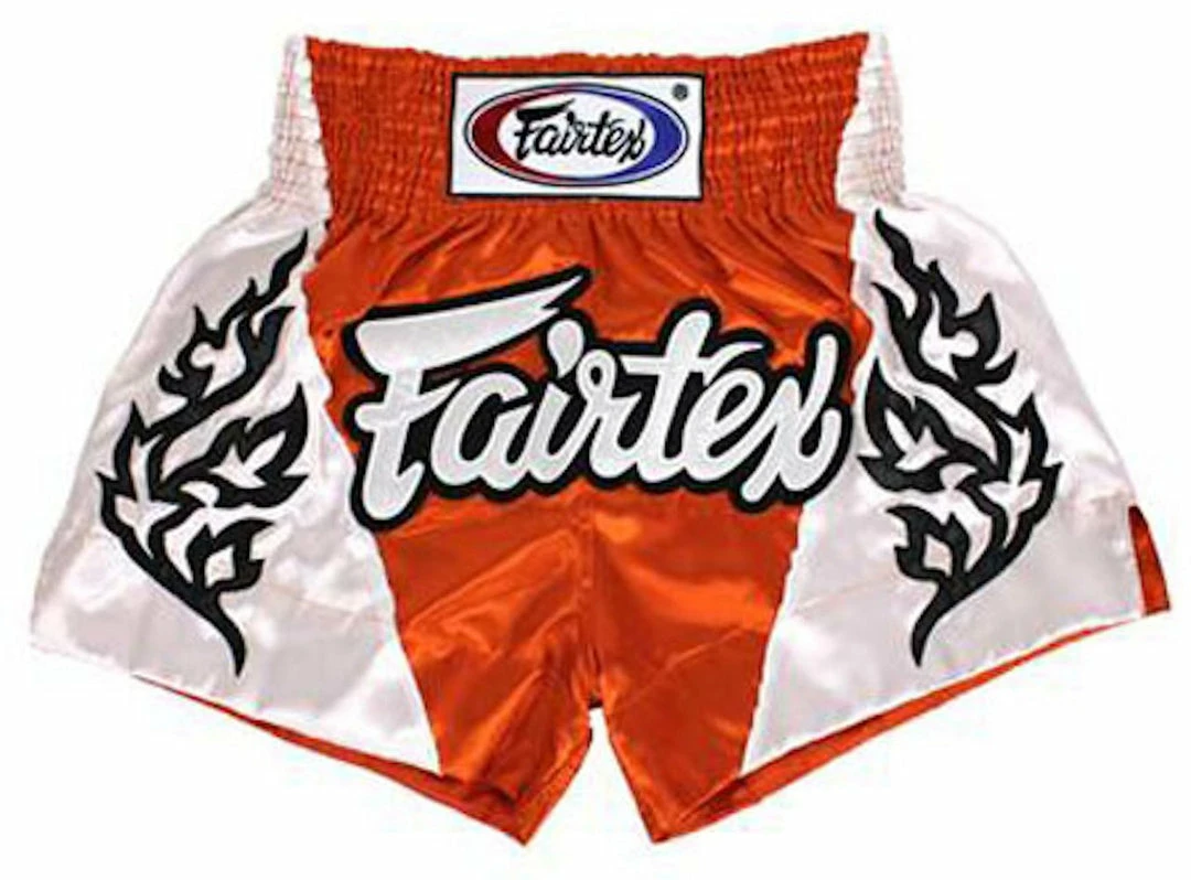 - With the famous Fairtex logo across the front of the garment; deep waistband and typically excellent quality. Fairtex have been producing Muay Thai equipment since 1993 and are well known in the sport as a brand who put development and style at the forefront of their products.