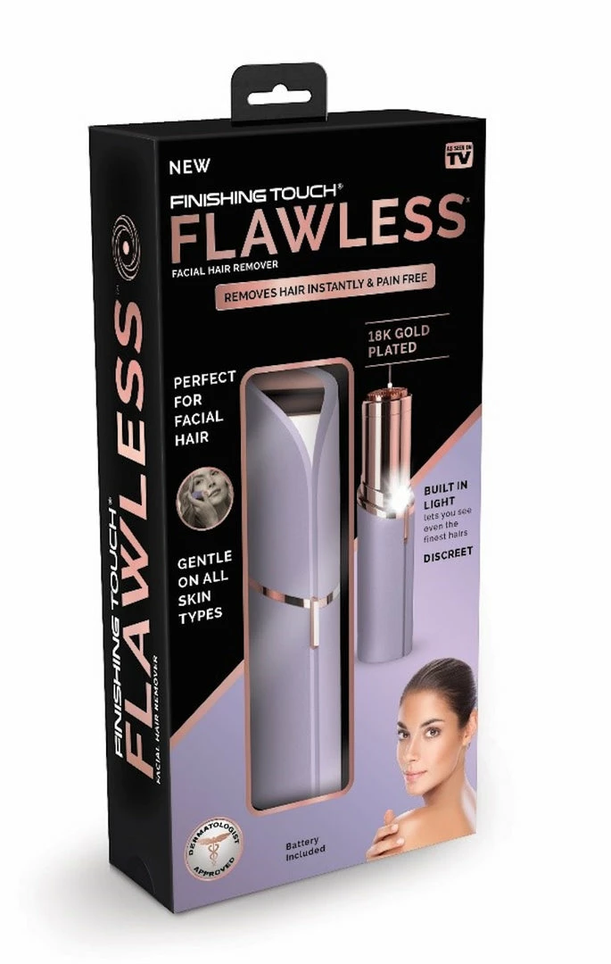 Finishing Touch Flawless is the revolutionary facial hair removal device that erases hair instantly and painlessly without the irritation that comes with plucking, waxing or depilatories. Flawless is an everyday maintenance clean up tool, designed to look like a lipstick but contains the finest German engineered technology that microscopically removes hair, so you can be “flawless” anywhere, anytime!