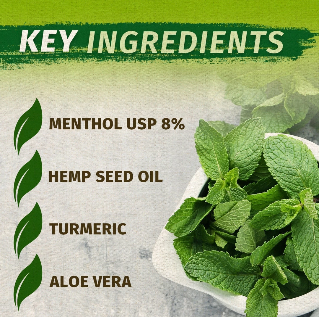 Fast-Acting Menthol Pain Gel with Hemp Seed Extract, Turmeric, Aloe for Arthritis Pain Relief, Joint Pain Relief, Back Pain, Muscle Soreness