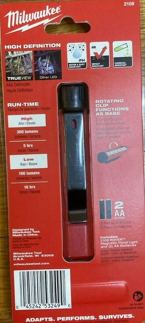 - Includes: (1) 2108 ROVER magnetic flood light,(2) AA batteries