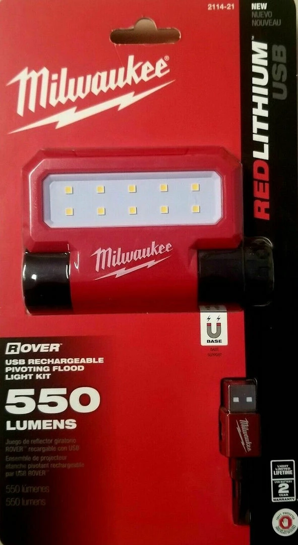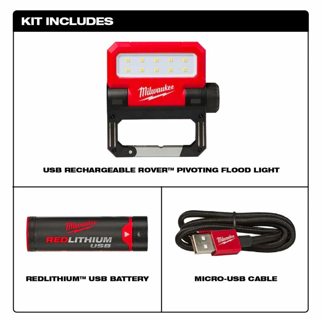 - Includes: USB rechargeable ROVER pivoting flood light, REDLITHIUM USB battery, 2 ft. heavy-duty cable