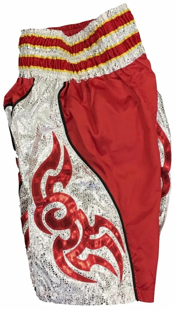 - It also features the “TRIBAL BAND” DESIGN in Red color down the White colored sides of the Trunks.