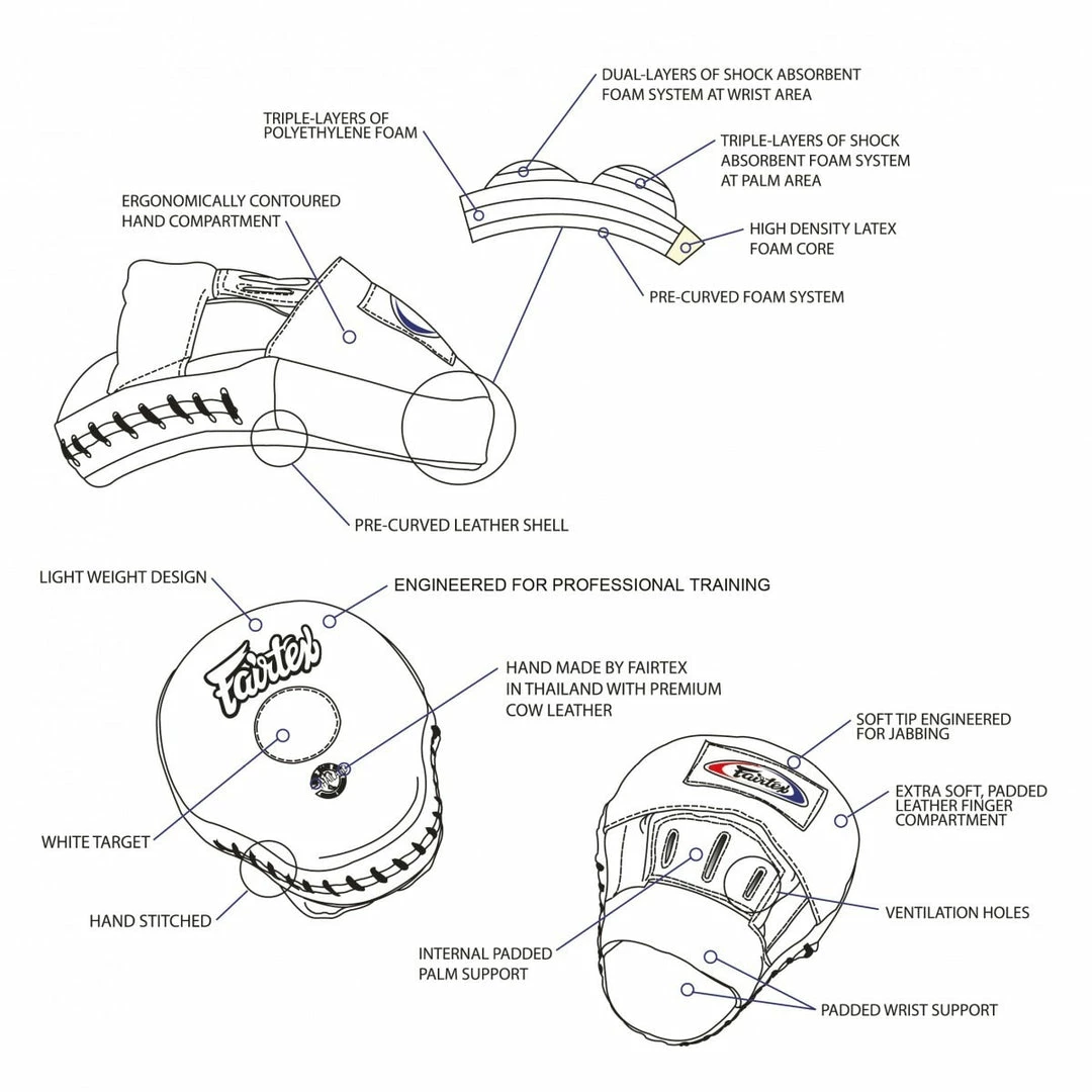 - Fairtex Curved Contoured Focus Mitts are Engineered to Fit Naturally to The Trainers Hands.