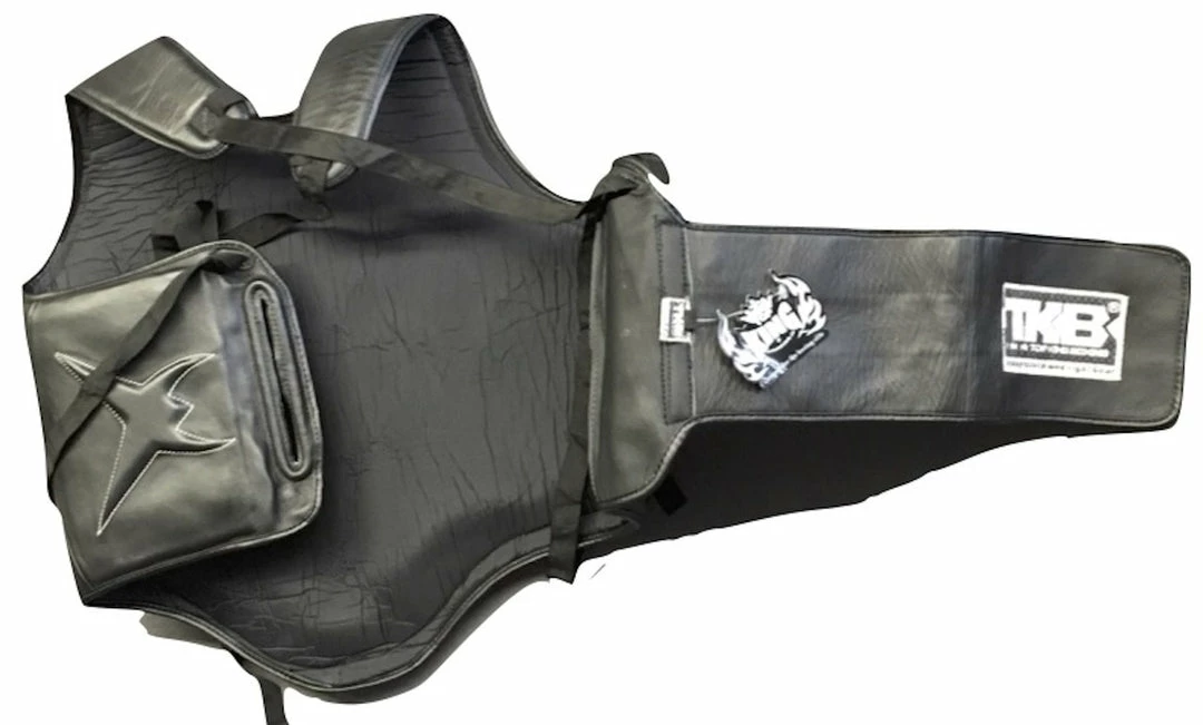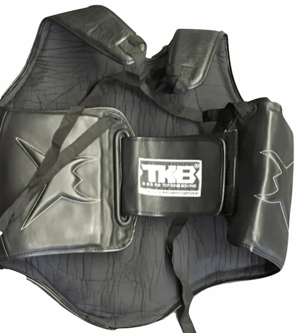 Top King created the BODY PROTECTOR for safe “COMPETITION” usage. Multi-Density, shock absorbent padding provides the ultimate protection against body blows. Tough Leather Construction to withstand round after round of punishment. Easy to wear and designed to allow for a full range of motion.Â